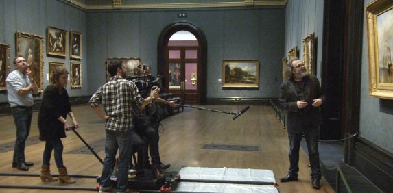 Interview being filmed in National Gallery, seen in Frederick Wiseman’s documentary